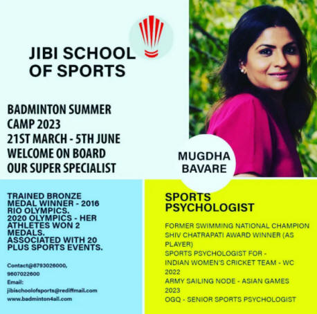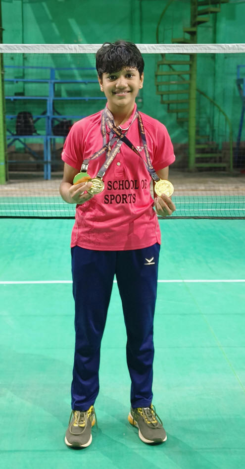 Mugdha Agrey,trainee of Jibi School of Sports, bagged twin Gold Medals at 62nd School Games Federation of India (SGFI) Badminton National Tournament at Divisional Sports Complex, Nashik. In the team event, she won her singles & doubles match and guided Maharashtra to Gold. In the individual event, Mugdha Agrey defeated Likhita Shrivastava of DAV Delhi 21-8, 21-14 in Under-19 Girls Singles to win Gold.